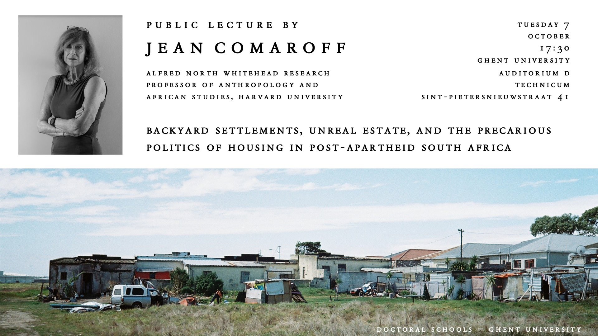 We are looking forward to the upcoming lecture with Prof. Jean Comaroff, titled ‘'Backyard Settlements, Unreal Estate, and the Precarious Politics of Housing in Post-Apartheid South Africa”, which will take place on 07/10.